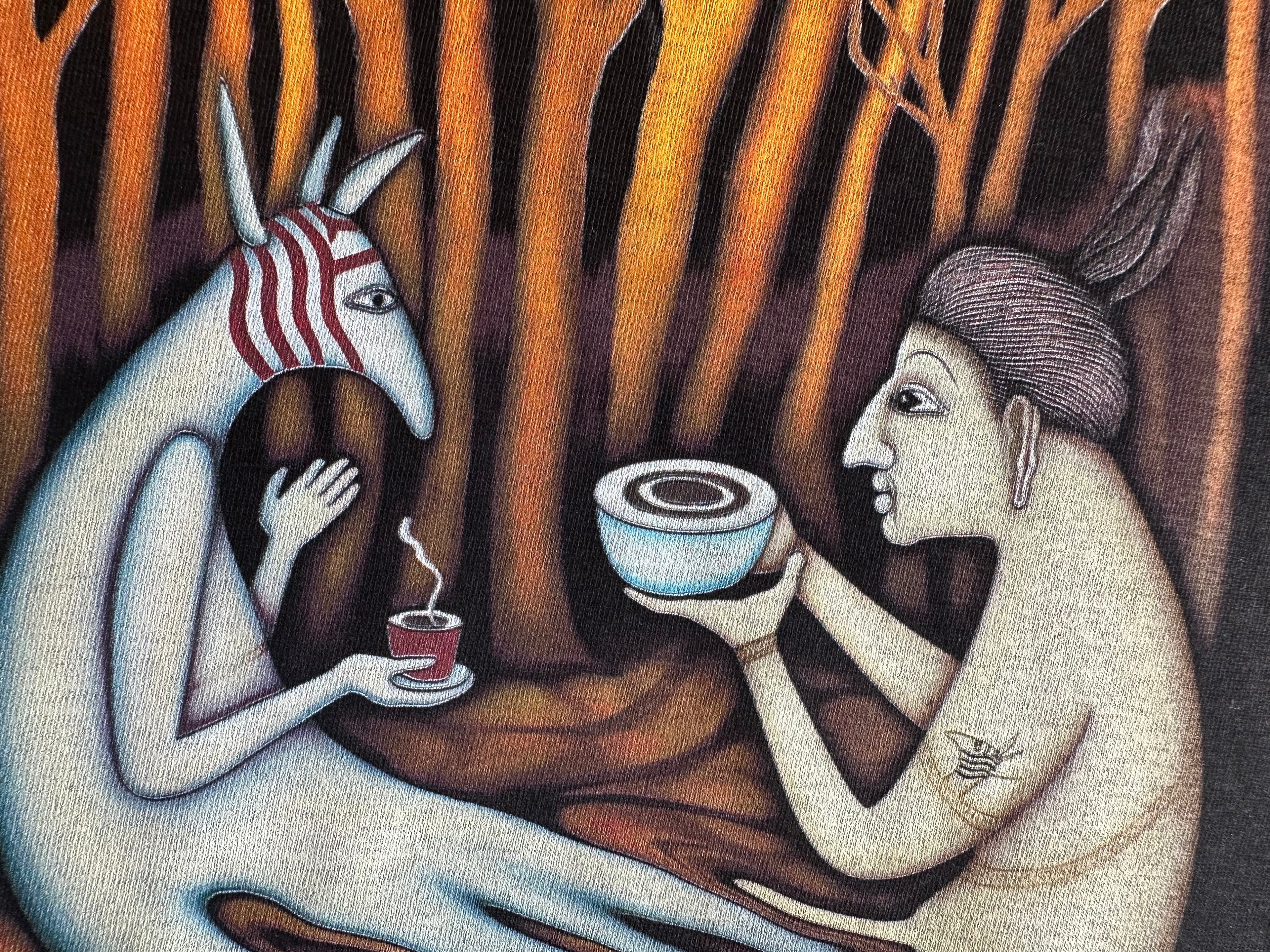 Pro rychlý přehled variant používáme mockupy oděvu (střih/odstín může být vizualizovaný). Potisky jsou skutečné motivy. V detailu každého produktu najdete skutečnou fotku trička nebo mikiny s popisem materiálu a většinou i detail reálného tisku.
